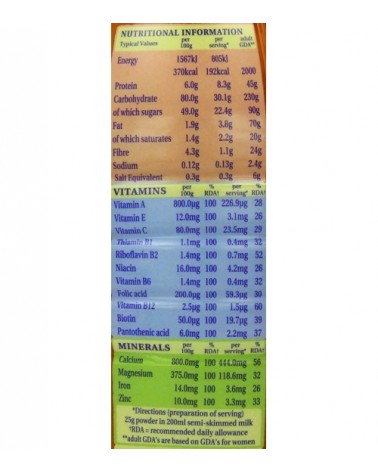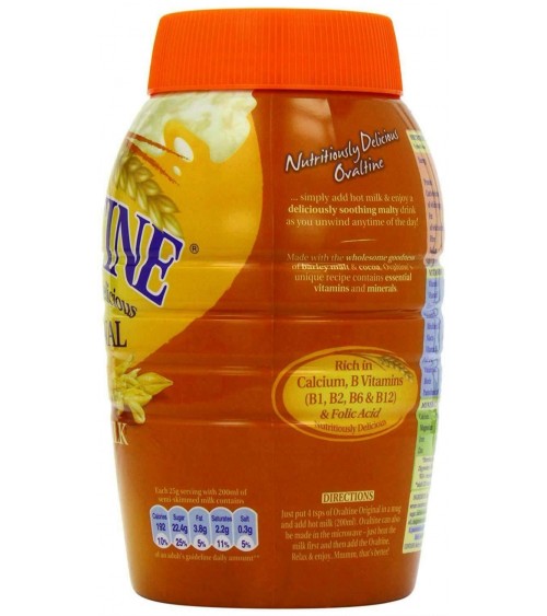 Delicious malted drink with cocoa Made with the wholesome goodness of barley malt and cocoa Rich source of iron and Vitamins A, C, B6 and B12 Support the normal function of the immune system Enjoy as part of a balanced diet and healthy lifestyle Delicious malted drink with cocoa made with the wholesome goodness of barley malt and cocoa, Ovaltine's unique recipe contains essential vitamins and minerals. It is a rich source of Iron and Vitamins A, C, B6 and B12, which support the normal function of the immune system. Available in 800 g pack.